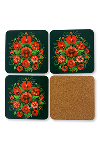 Functionality meets beauty with this set of 4 drink coasters, each featuring stunning Ukrainian designs on one side. These coasters showcase intricate patterns and vibrant colors inspired by traditional Ukrainian motifs, adding a touch of cultural elegance to your home or office. Not only do they protect your surfaces from spills and stains, but they also serve as charming decorative accents that spark conversation. Durable and easy to clean, these coasters combine practicality with artistic flair, making them a perfect gift or a stylish addition to your own space. Elevate your drink experience with these unique, eye-catching coasters.