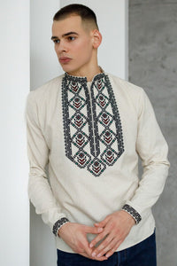 Experience the rich cultural heritage with our Ukrainian men's Vyshyvanka "Podillia"! This traditional garment is made with high-quality unbleached linen blend fabric and adds a touch of heritage to your wardrobe. Adorned with beautiful black and red and a touch of green embroidery, it's perfect for special occasions or casual wear. Embrace the beauty and tradition with our iconic Vyshyvanka!