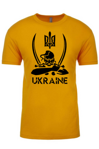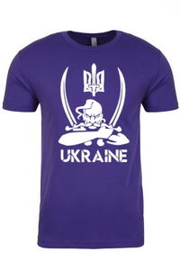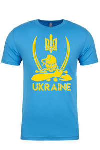 Show your solidarity with Ukraine proudly in this adult long-sleeved shirt. Designed for comfort and style, it boldly displays a fierce and brave Ukrainian Kozak armed with two sabres and determination to protect his Homeland. Perfect for everyday wear or events, this shirt helps you advocate for a cause that matters.