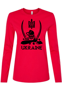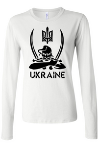 Show your solidarity with Ukraine proudly in this adult long-sleeved shirt. Designed for comfort and style, it boldly displays a fierce and brave Ukrainian Kozak armed with two sabres and determination to protect his Homeland. Perfect for everyday wear or events, this shirt helps you advocate for a cause that matters.