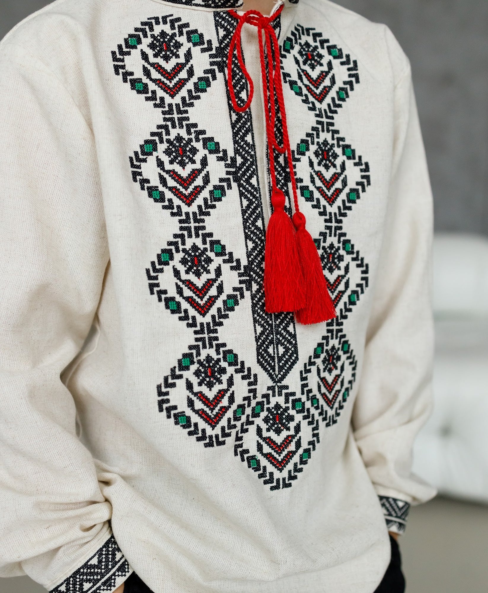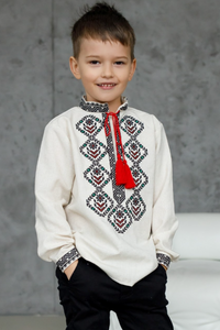 Experience the rich cultural heritage with our Ukrainian boys' Vyshyvanka "Podillia"! This traditional garment is made with high-quality unbleached linen blend fabric and adds a touch of heritage to your wardrobe. Adorned with beautiful black and red and a touch of green embroidery, it's perfect for special occasions or casual wear. Embrace the beauty and tradition with our iconic Vyshyvanka!
