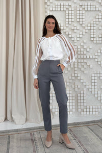 Discover the perfect blend of tradition and contemporary elegance with this stunning Ukrainian chiffon blouse. Crafted from soft, breathable white fabric, it features exquisite transparent laced sleeves that add an enchanting touch of femininity. The lightweight design keeps you comfortable all day long, while the sophisticated silhouette effortlessly elevates any outfit. Whether you're dressing for a special occasion or everyday wear, this versatile piece celebrates cultural heritage with undeniable style.