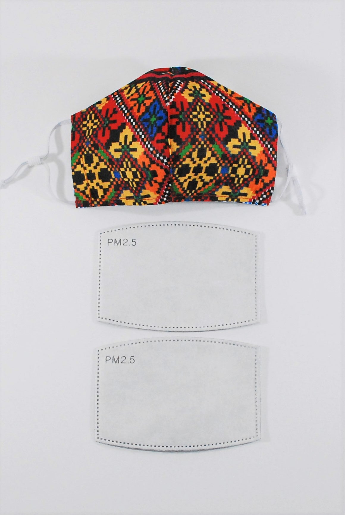 This double layer mask is fitted to the facial curves with elastic bands attached as ear loops.