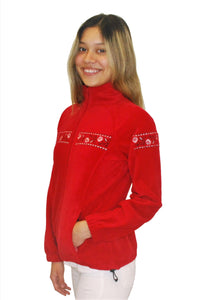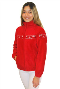 Cute and chic full-zip fleece jacket with real cross-stitch embroidery. Raglan sleeves and princess seams for optimal adulation of the female physique. 100% spun polyester fleece with a supple, pill-free finish and front yoke are the quality components of this jacket. Non-roll elastic cuffs, front zip pockets, and an inside casing with a drawcord and toggles at the bottom hem. Some days, the weather just isn’t right for a big heavy coat or dense, saturated sweaters. This full-zip fleece delivers breathability and flexibility that you can remove, quarter zip, unzip or put back on as needed.