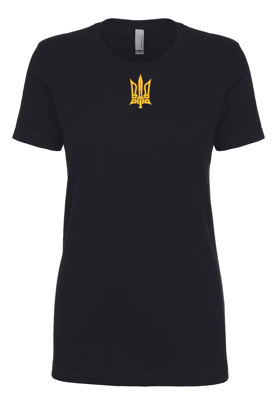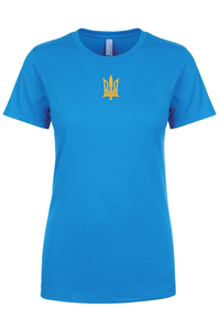 Show your national pride with this "Tryzub" female-fit embroidered t-shirt. Soft premium cotton and the iconic Ukrainian symbol of combat Trident make this t-shirt the perfect way to express your patriotism and commemorate your heritage.