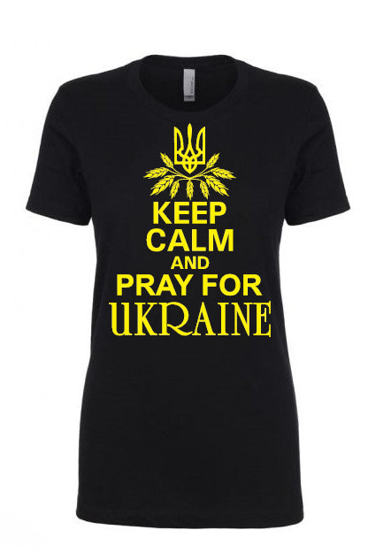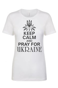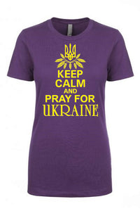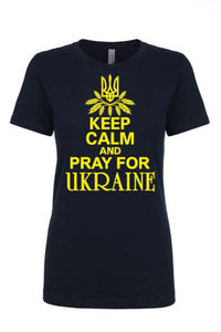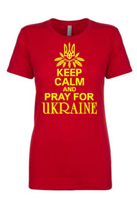 Female fit t-shirt "Keep calm and pray for Ukraine"