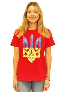 Trident - commonly know as Tryzub - is the national symbol and coat of arms of Ukraine. Blue and yellow are the colors of the Ukrainian flag.