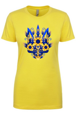 Ladies' t-shirts adorned with traditional Ukrainian designs applied in different decoration techniques: embroidery, digital print, htv including glitter and metallic transfers. Embrace the beauty and heritage of Ukraine with our unique selection of high-quality t-shirts. Showcase your national pride and support for Ukraine at this difficult time of war waged again by #terroristrussia.