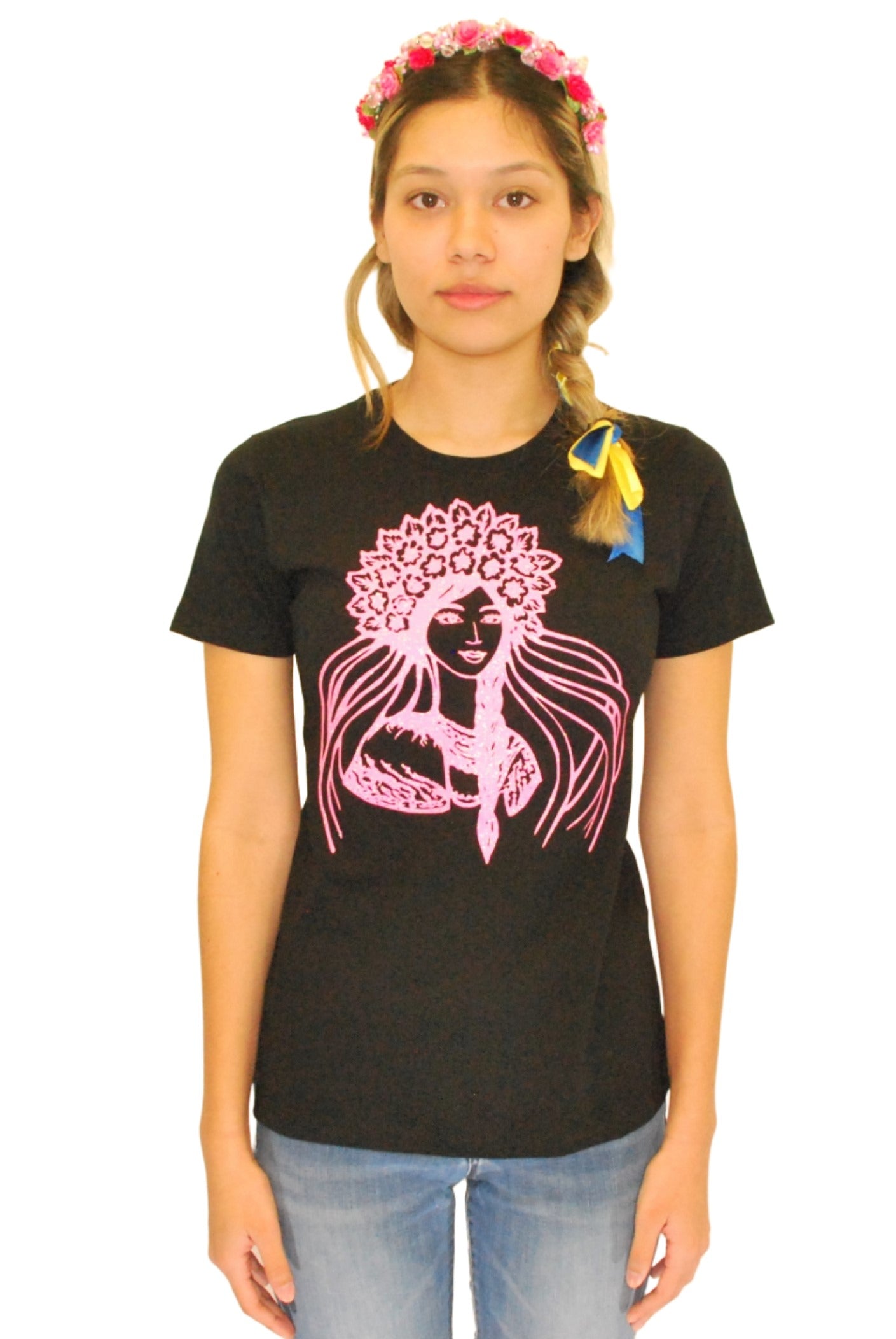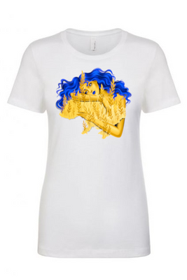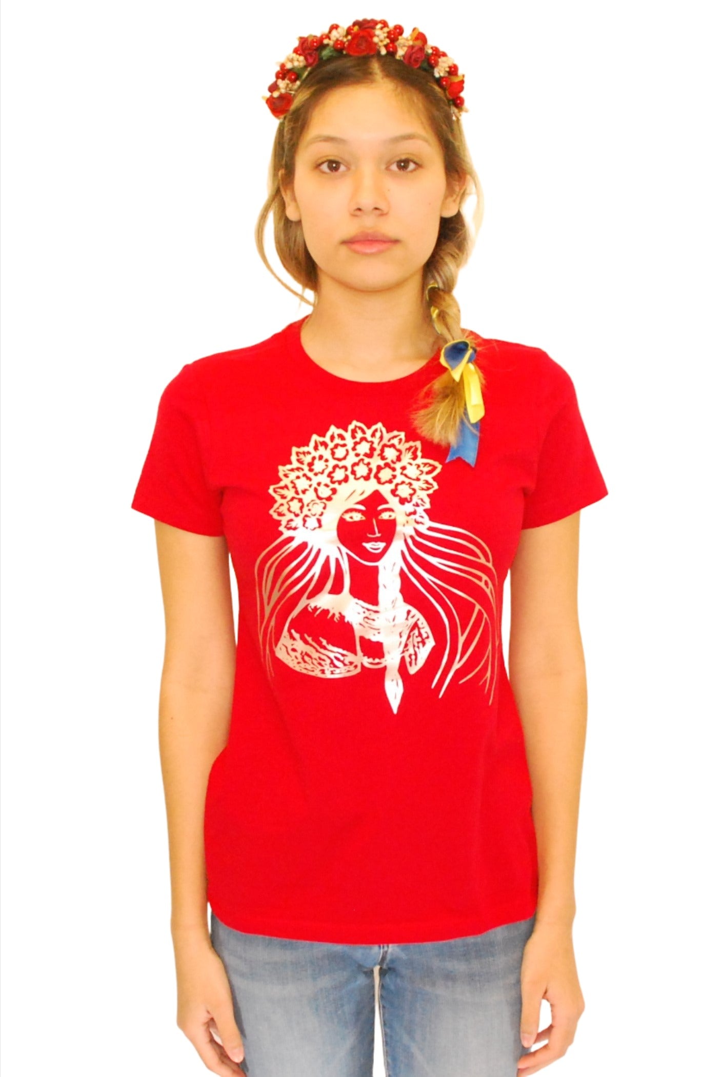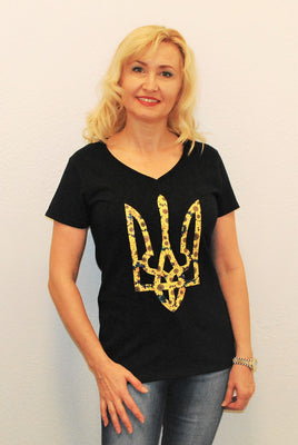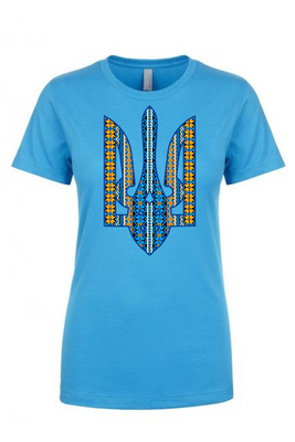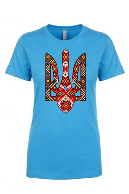 Ladies' t-shirts adorned with traditional Ukrainian designs applied in different decoration techniques: embroidery, digital print, htv including glitter and metallic transfers. Embrace the beauty and heritage of Ukraine with our unique selection of high-quality t-shirts. Showcase your national pride and support for Ukraine at this difficult time of war waged again by #terroristrussia.