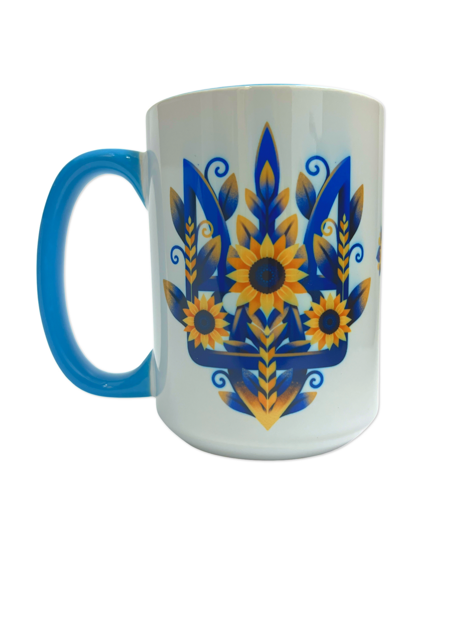 Customized premium blue handle ceramic coffee mug 15 oz.