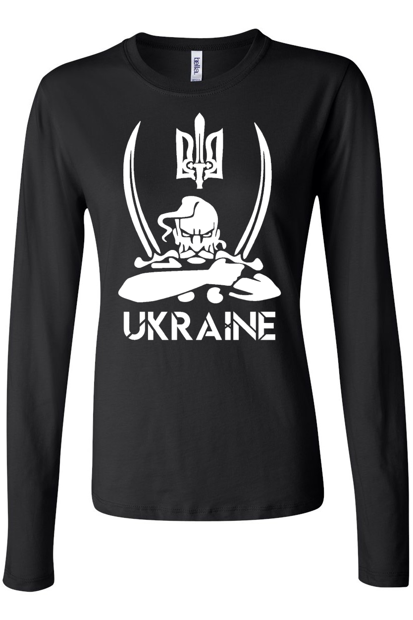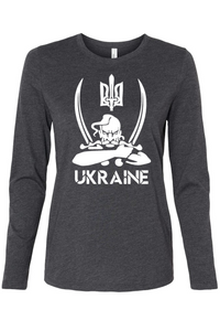 Show your solidarity with Ukraine proudly in this adult long-sleeved shirt. Designed for comfort and style, it boldly displays a fierce and brave Ukrainian Kozak armed with two sabres and determination to protect his Homeland. Perfect for everyday wear or events, this shirt helps you advocate for a cause that matters.