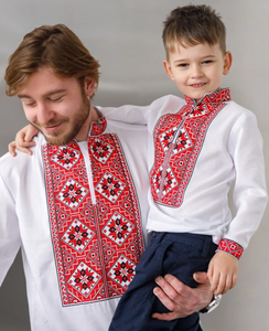 Enjoy the fresh and rich look of the red and black color combination, most iconic Ukrainian embroidery. Create a stunning family look with matching men's, ladies', boy's and girl's vyshyvanky.