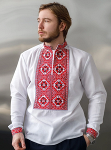Experience the rich cultural heritage with our Ukrainian white Vyshyvanka "Cherkasy"! This traditional garment is crafted from high-quality fabric, adding a touch of elegance to your wardrobe. Adorned with beautiful red and black cross-stitch embroidery, it's perfect for special occasions, events, and celebrations. Embrace the beauty and tradition with our Vyshyvanka!